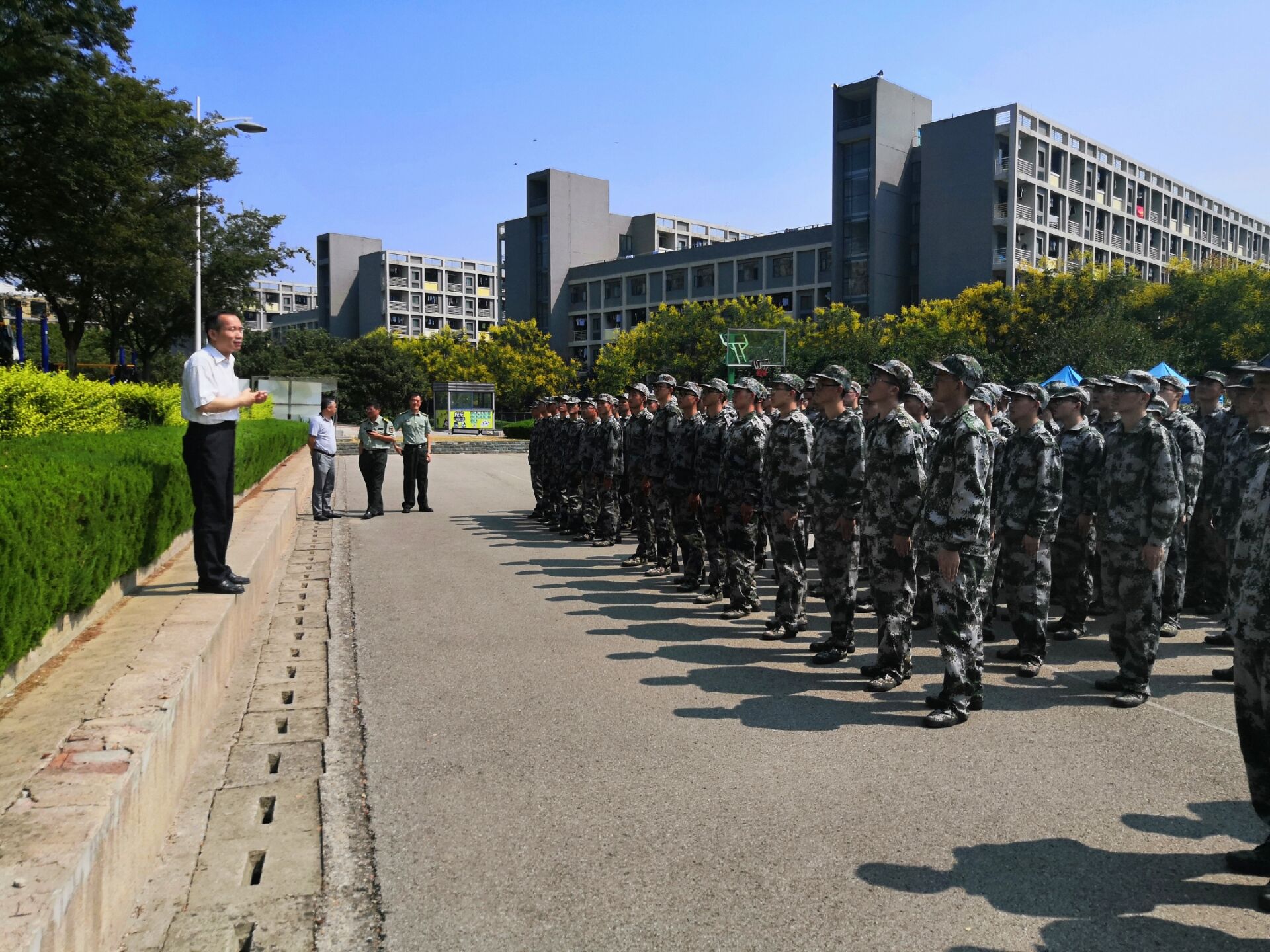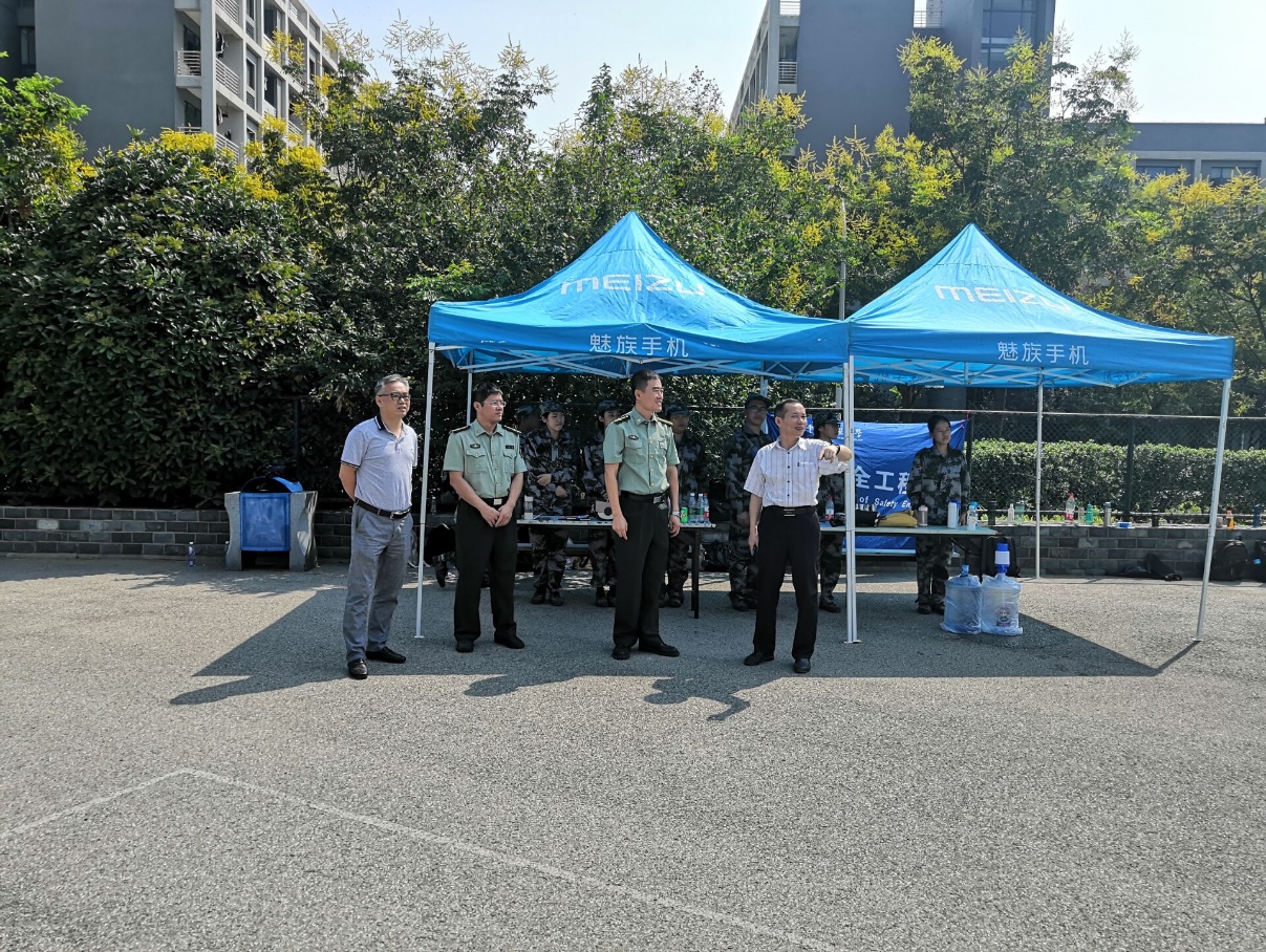 党委书记章毛平、党委副书记钱雄、副院长朱晓东来到军训场地,对军训教官和2019级全体新生进行了亲切的慰问。
