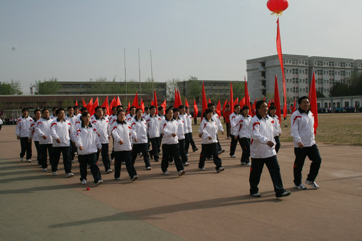 教职工队伍服装统一,神采飞扬,他们以高昂的斗志和饱满的精神面貌走过主席台。随后,各单位代表队进行了精彩的体操表演,不时赢得场边观众的整整掌声。