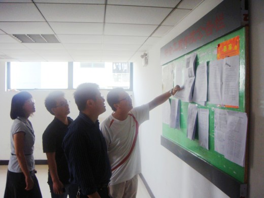 钱书记首先来到梅三一楼的活动室与自习室,然后仔细查看各楼层的公告栏和班级、宿舍的公告栏。钱书记对各班在楼道内的文化建设工作表示了肯定,尤其对消防08-1班公布在班级资源共享、交流讨论和阶段计划等方面给予了较高的评价。之后,钱书记亲切走访学生宿舍,对宿舍环境的进一步改善提出了不少建议,并告诫同学们应该养成良好的生活习惯,为自己以后的工作、生活打下坚实的基础。钱书记谈到,宿舍是学生活动最多的地方,一个良好的宿舍环境能更利于学生的发展,更利于诞生先进的个人和集体。学院应该重视宿舍区的活动室与宿舍楼自习室的建设和管理,为广大同学创造便利的学习、工作、课余活动的环境。对于宿舍公告栏,应做好及时的清理和信息的更新,以保证同学们及时了解学院学校的动态。