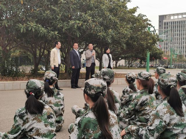军训工作的三位教官亲切交谈,了解他们在校的生活、训练工作的进展及参训同学的表现情况,勉励大家加强沟通协作,科学施训,安全、顺利、圆满完成军训工作。