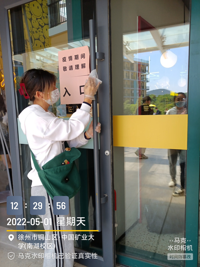 “欢度劳动节”劳动实践之——“公共场所接触传播风险源消毒净化”,在疫情常态化防控的背景下,同学们佩戴口罩手套,携带酒精消毒水等消毒用具去餐厅、图书馆等公共场所进行消杀,让同学们掌握阻断新冠病毒传播的方法,了解公共场所消毒净化的意义。