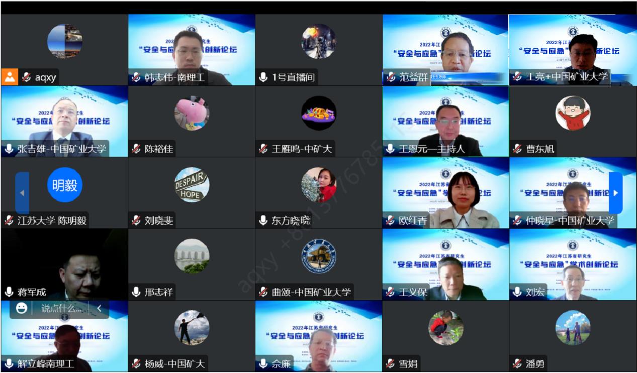 和应急管理学院承办的2022年江苏省研究生“安全与应急”学术创新论坛以线上方式举行。我校副校长张吉雄教授,江苏省研究生工学3类教指委副主任委员范益群教授和南京工业大学校长蒋军成教授、安全科学与工程学院院长潘勇教授,韩国三级