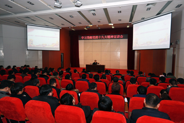 刘波书记以“学习贯彻党的十九大精神、建设一流学科推动学校事业发展”为主题,解读了党的十九大报告的主要内容,论述了我国高等教育进入新时代取得的标志性成果、主要经验以及面临的新挑战和新机遇,并着重分析了我校学科发展的现状及挑战,提出了相关工作要求。