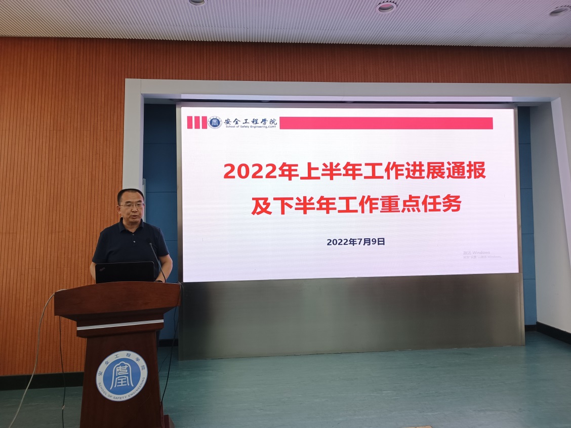 院长王恩元向大家通报了学院2022年上半年工作完成情况,并就下半年重点工作任务进行了强调。他指出,2022 年是党的二十大召开之年,也是实施“十四五”规划承上启下的关键之年。上半年,韩国三级