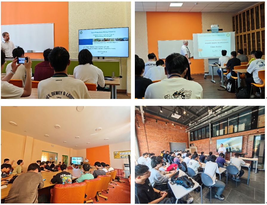 实践活动伊始,圣彼得堡矿业大学为我校师生举行了隆重的启动仪式。教育事务副校长 Petrakov Dmitry Gennadievich、外事副校长 Lyubin Evgeny Anatolyevich、联合国教科文组织国际矿业工程教育能力中心主任 Vladimir Borzenkov、矿业工程学院院长 Oleg Kazanin 教授等校方代表出席开幕式并对我校师生表示热烈欢迎。他们希望通过此次实践提升同学们的专业素养与知识水平,体验俄罗斯文化,并进一步深化两校的交流合作。随后,矿业工程学院院长 Oleg Kazanin 教授详细介绍了本次暑期实践活动的整体日程安排与具体要求,并组织同学们参观了圣彼得堡矿业大学矿业博物馆。