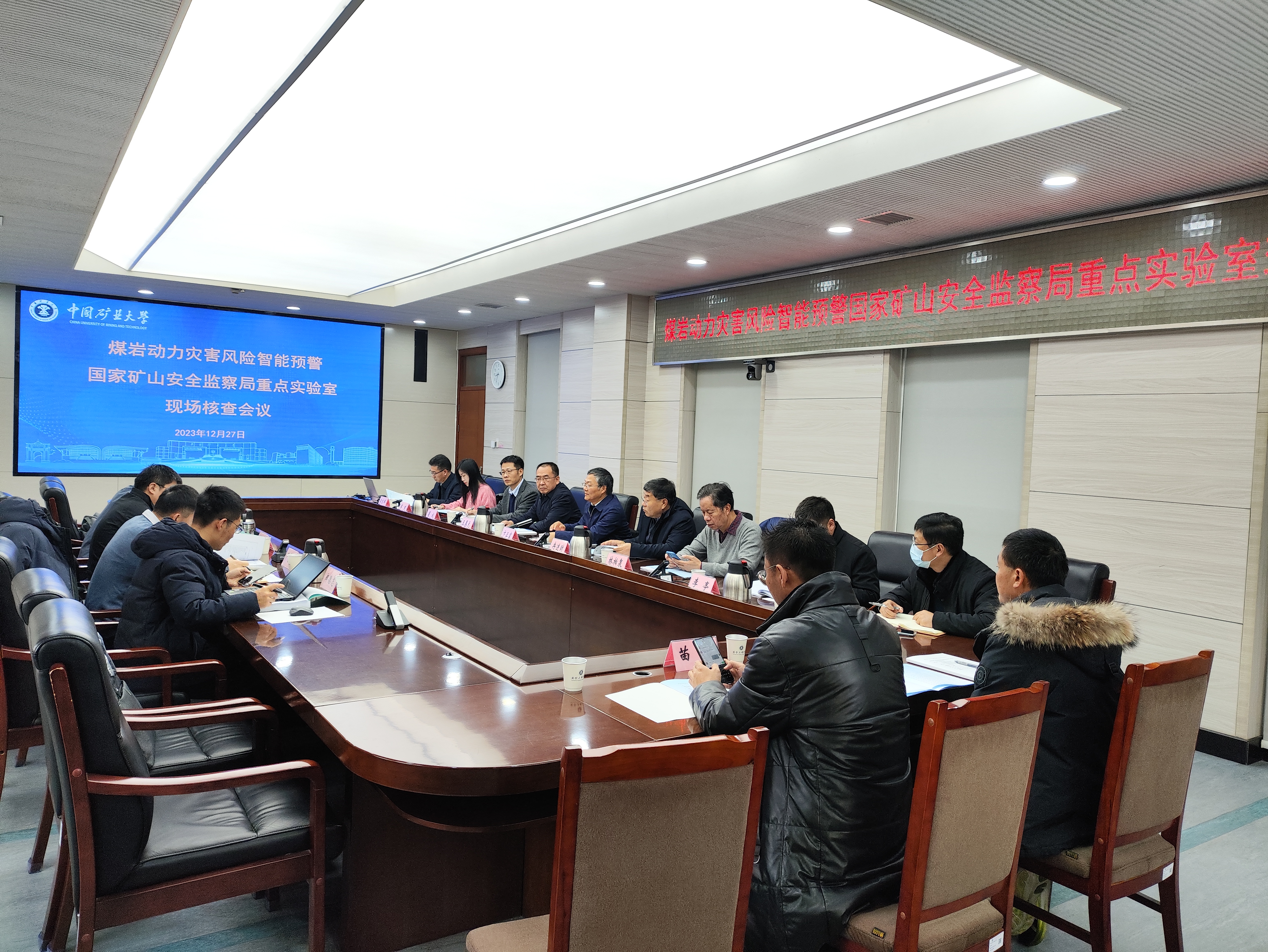、应急管理部信息研究院和陕西煤业股份有限公司联合申报的煤岩动力灾害风险智能预警国家矿山安全监察局重点实验室现场核查会在我校召开。会议由国家矿山安全监察局法规科技司二级巡视员牛军主持,韩国三级