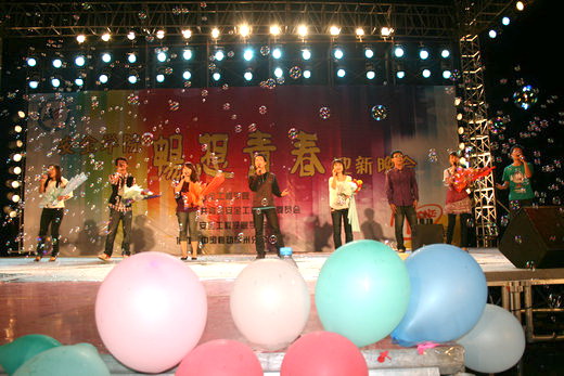 晚会在欢快激昂的乐队表演中拉开了序幕,由阿依丁等人演奏的《大阪城的姑娘》等曲目一下子将全场气氛活跃起来。随后,四位主持人一起上台,向全场观众的到来表示热烈的欢迎。晚会很快在精彩的节目中推向高潮。赵艳辉、刘欢等人表演的踢踏舞《大河之舞》,其雄浑的气势迎来了场下阵阵掌声。由大一新生带来的《三句半》更是逗得观众捧腹大笑。郭峰、李灿等人表演的机械舞《We Rolling》表现了韩国三级