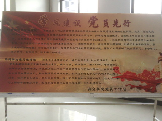 11月27日党员工作站积极与团委学生会合办学风建设论坛,通过同学们的自由交流发现大家在学习中普遍存在的问题,并探讨学习经验。12月1日党员工作站在梅三一楼大厅展出以“学风建设,党员先行”为主题的展板,展板围绕怎样加强党员工作站、保持学生党员先进性这一问题,展出期间宣传板成为了同学们了解党员工作站,关注党员在学习上发挥模范作用的一个有效窗口。12月3日,为提醒同学们积极备考英语四六级考试,党员工作站与团委学生会于梅三一楼大厅及桃一五楼宣传栏建立了英语四六级考试倒计时工作牌,倒计时工作牌的建立,体现了韩国三级