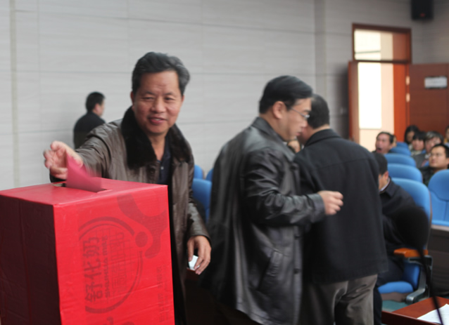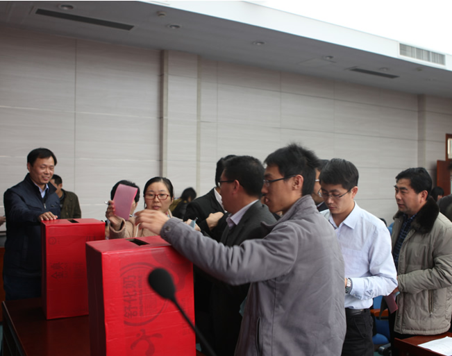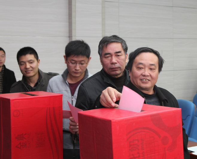 下午2∶30会议正式开始。院工会主席张人伟代表上一届工会报告工作。工会委员吴征艳对上一届工会会费收支明细情况进行了汇报。随后,大会表决通过了《选举办法》和出席校第八届教代会、第十四届工代会代表候选人名单以及第二届院工会委员候选人名单,推举钱雄为总计监票人并主持选举,推举李庆钊、李晓伟为监票人,孙留涛、刘应科、宋大钊、李伟为计票人。出席会议的62名教职工进行了现场投票。经差额投票选举,7名当选第二届院工会委员的分别是(按姓氏笔画为序):王亮、刘晓斐、李忠辉、吴征艳、胡惠强、裴晓东、魏静;代表韩国三级