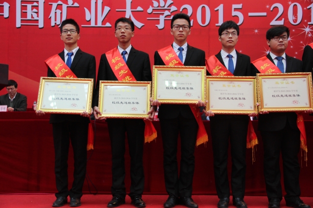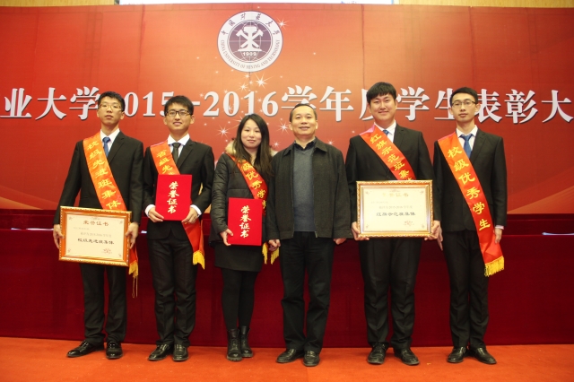 2015-2016学年度学生表彰大会于南湖校区体育馆举行。校长葛世荣等校领导出席本次大会并为获奖学生代表颁发荣誉证书,包括安全学院在内的二十多个学院参加了本次大会。安全学院党委书记章毛平、党委副书记钱雄、辅导员孙留涛、孙婷均参加此次会议。