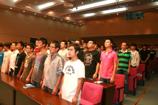秦波涛教授作为教师代表发言,他结合自身经历要求同学们一定要热爱自己的专业、要有追求的目标、要善于学习和创新以及要努力全面发展。随后安全08-4班刘建安同学和10级新生代表马晋钰同学分别发言。最后,新生开学典礼在韩国三级