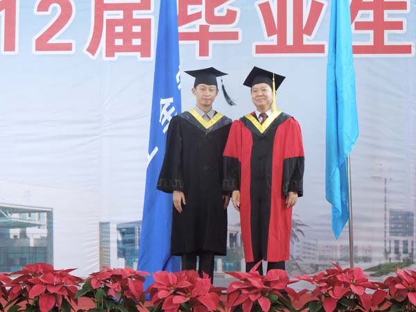 仪式上,李增华副院长首先向大家简单的介绍了今天到场的嘉宾,随后由来袁亮院长亲自为每一位毕业生拨流苏,并高兴地祝贺每一位毕业生,亲切地与他们合影留念。紧接着曾勇教授为每一位毕业生颁发了学位证书,并亲切地与毕业生握手表示祝贺,合影留念。下台后毕业生们怀着满心的喜悦,向诸位教授鞠躬、握手,感谢老师们的谆谆教导。