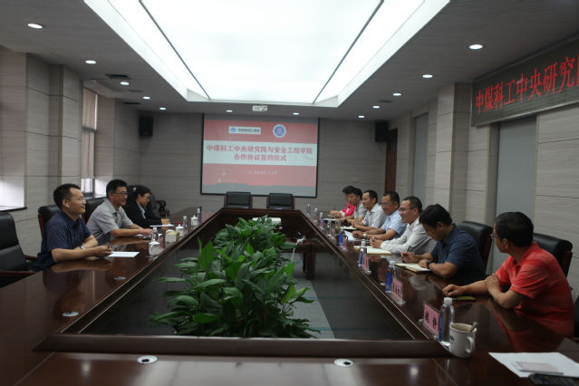 王恩元院长代表学院与中煤科工中央研究院签署框架合作协议。双方将在“平等互利、优势互补、资源共享、协同创新、共同发展”的原则基础上,在科技创新、人才培养、科研平台及创新团队建设等方面进行深入合作,来提升双方科研能力、成果应用化水平和技术成果转化、转移的综合能力;探索培养行业亟需人才的产教融合模式;打造具有融合优势的研究成果,提升我国应急科技水平的影响力,推动我国应急科技创新进步。