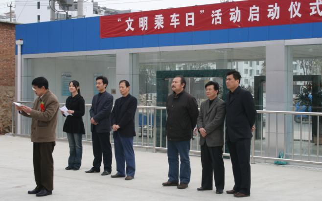 4月12日上午,由安全学院青年志愿者协会和徐州公交公司共同组织的“文明乘车日”活动在风华园对面举行了启动仪式。出席启动仪式的领导有公交公司党委书记孟庆华,安全学院团委书记孙留涛,公交公司政治工作部刘迅,公交公司运营服务部陈军,公交公司团委书记赵世纯。公交公司工作人员和安全学院近百名青年志愿者参加了此次启动仪式,部分热心的乘客代表也参加了此次仪式。