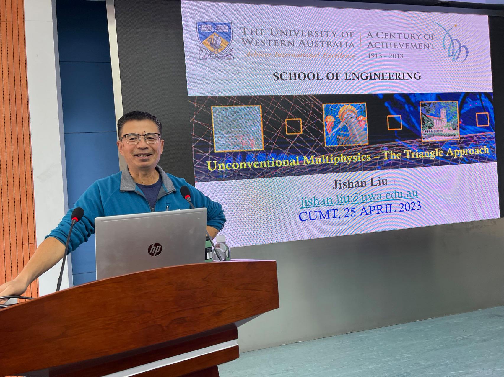 邀请,西澳大学刘继山教授在矿业科学中心A200作了题为《非常规多物理场–三角形方法》的学术报告。报告由学院副院长王亮教授主持,学院50余名师生参与了学术交流与研讨。