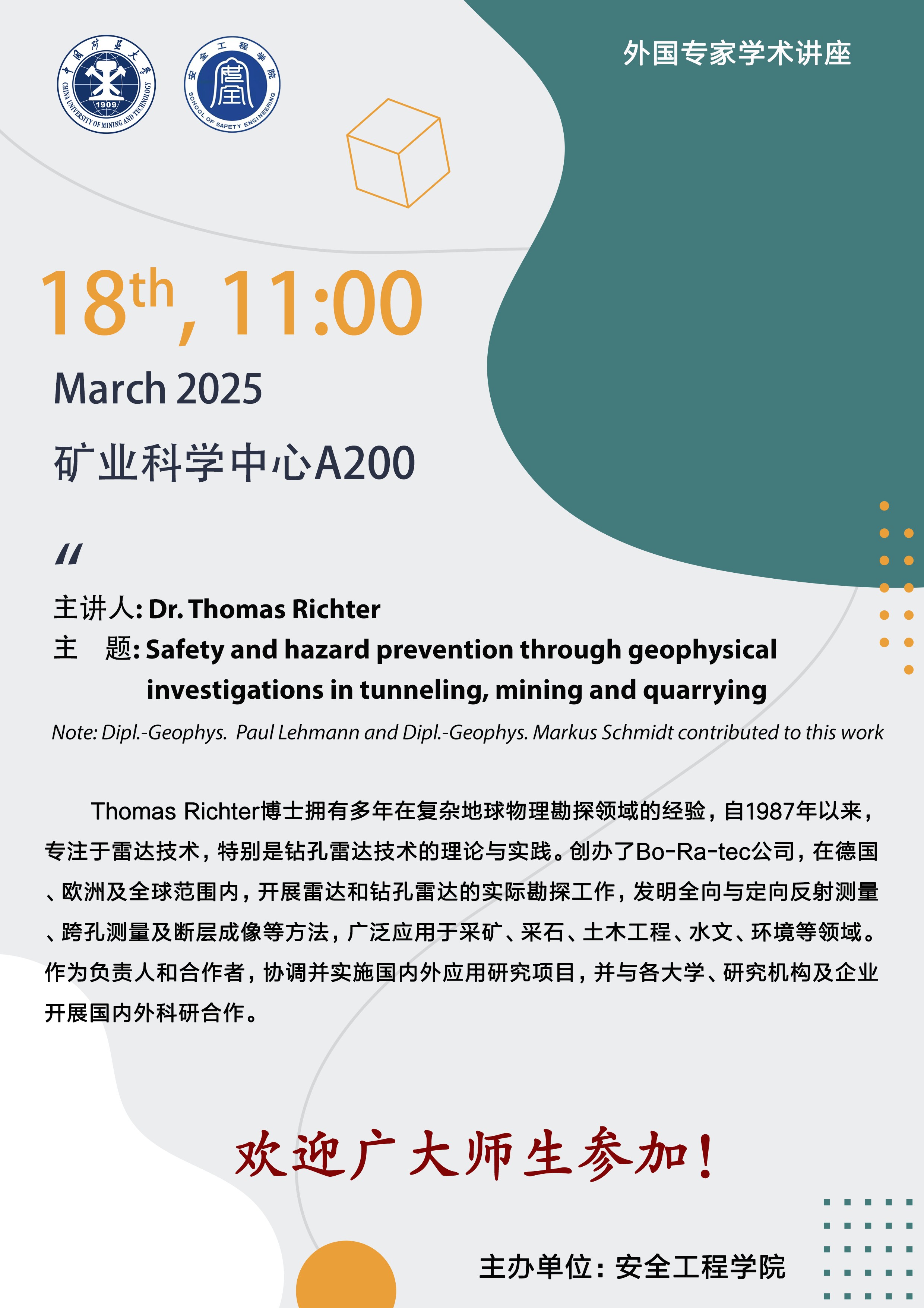 学术报告-Safety and hazard prevention through geophysicalinvestigations in tunneling, mining and quarrying