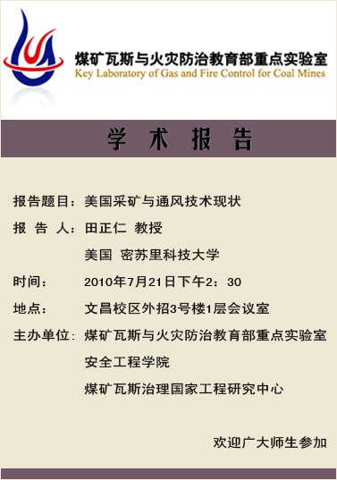 田正仁教授学术报告——美国采矿与通风技术现状