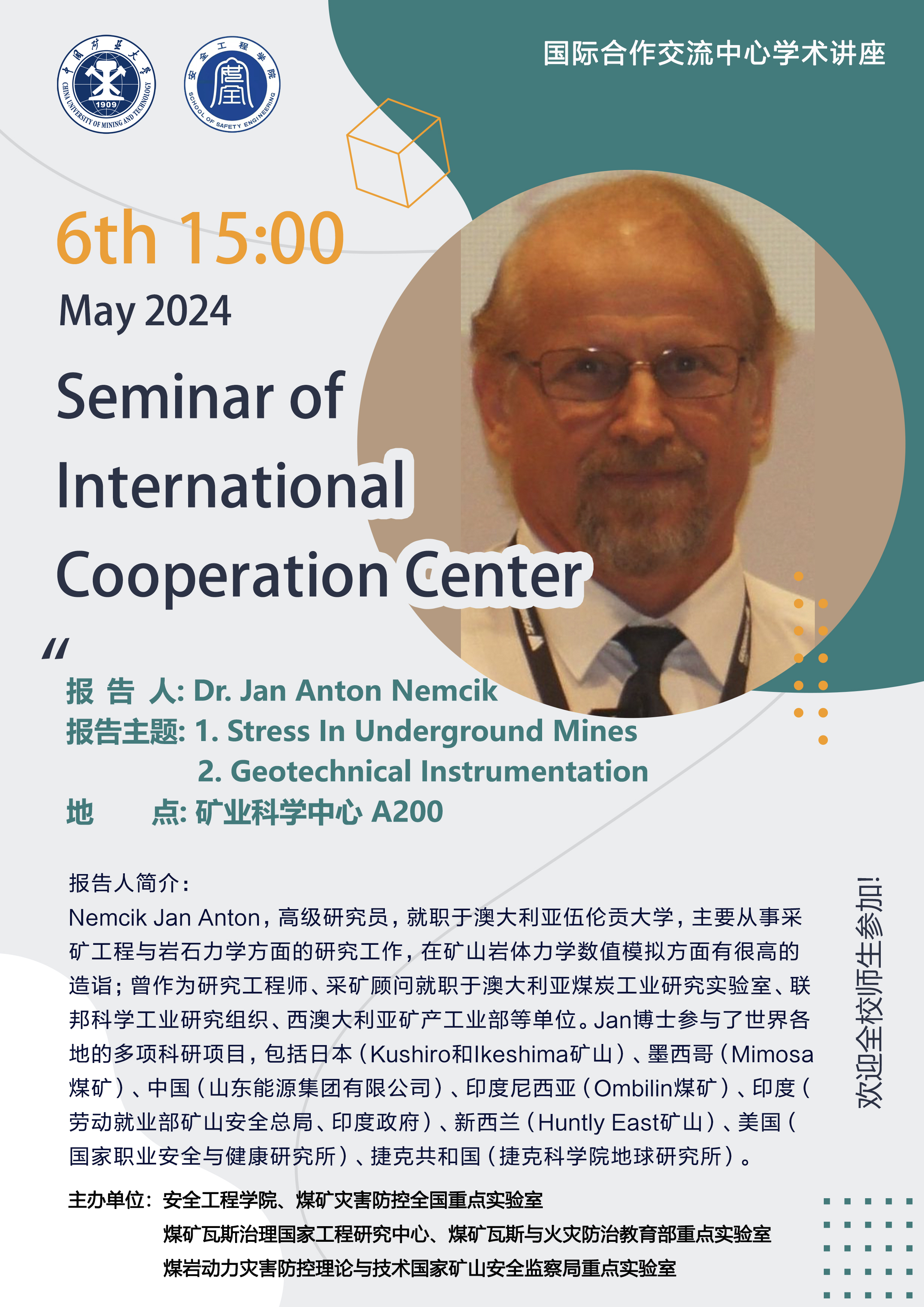 学术报告:Stress In Underground Mines & Geotechnical Instrumentation