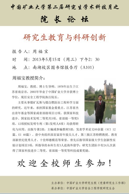 第二届研究生学术科技月之院长论坛(周福宝院长)公告