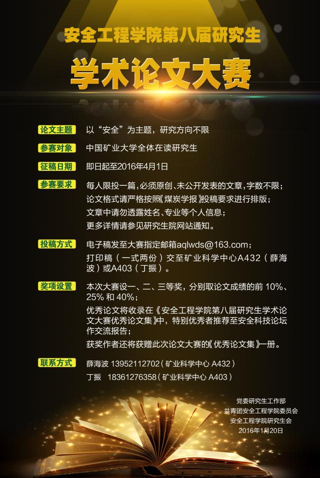 第八届研究生学术论文大赛优秀论文集》中,特别优秀的将推荐至安全科技论坛作交流报告并优先推荐至校级论文大赛评选活动。